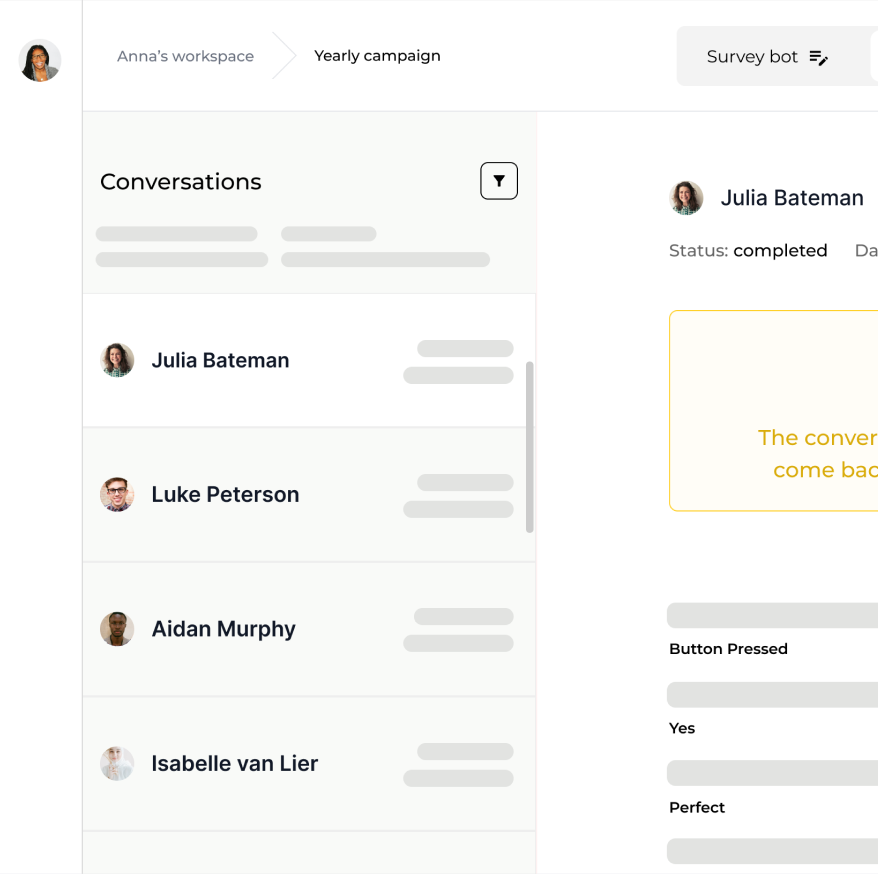 Deploy advanced bots to conduct interviews, collecting feedback through natural, conversational interactions.